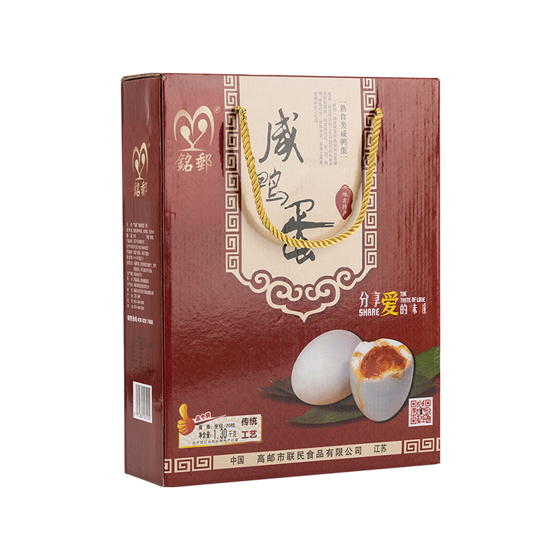 高郵市聯(lián)民食品公司成立于2012年,坐落在魚米之鄉(xiāng),一蛋雙黃,好事成雙的鴨蛋原產(chǎn)地高郵,專注鴨蛋行業(yè)很多年,目前致力于三家知名上市食品企業(yè)OEM代加工、和南京、常州、安徽、蘇州、優(yōu)質(zhì)食品企業(yè)深度合作及自主品牌線下代理商和線上的業(yè)務模式,精心深度加工麻鴨咸鴨蛋,專業(yè)生產(chǎn)咸蛋黃,精心做蛋的其他多種產(chǎn)品,公司擁有資深的研發(fā)團隊,有系統(tǒng)的研究和質(zhì)量控制中心,建設了有通風功能,高效殺菌的恒溫腌制車間,具有專業(yè)的大型蛋品生產(chǎn)設備,擁有8000平方米的生產(chǎn)車間,服務全國客戶超千萬枚的蛋制品,生產(chǎn)的“銘郵”牌系列蛋品選用當?shù)貎?yōu)質(zhì)的高郵鴨蛋為原料,采用傳統(tǒng)秘制工藝及現(xiàn)代加工技術(shù)恒溫腌制而成。長年供應,品種齊全。具體規(guī)格:55克、60克、65克、70克、75克、80克的咸鴨蛋及松花蛋,70克、80克、90克、100克以上的雙黃蛋及各種規(guī)格的咸蛋黃。希望各界伙伴和企事業(yè)單位共同就高郵蛋,攜手共贏!..